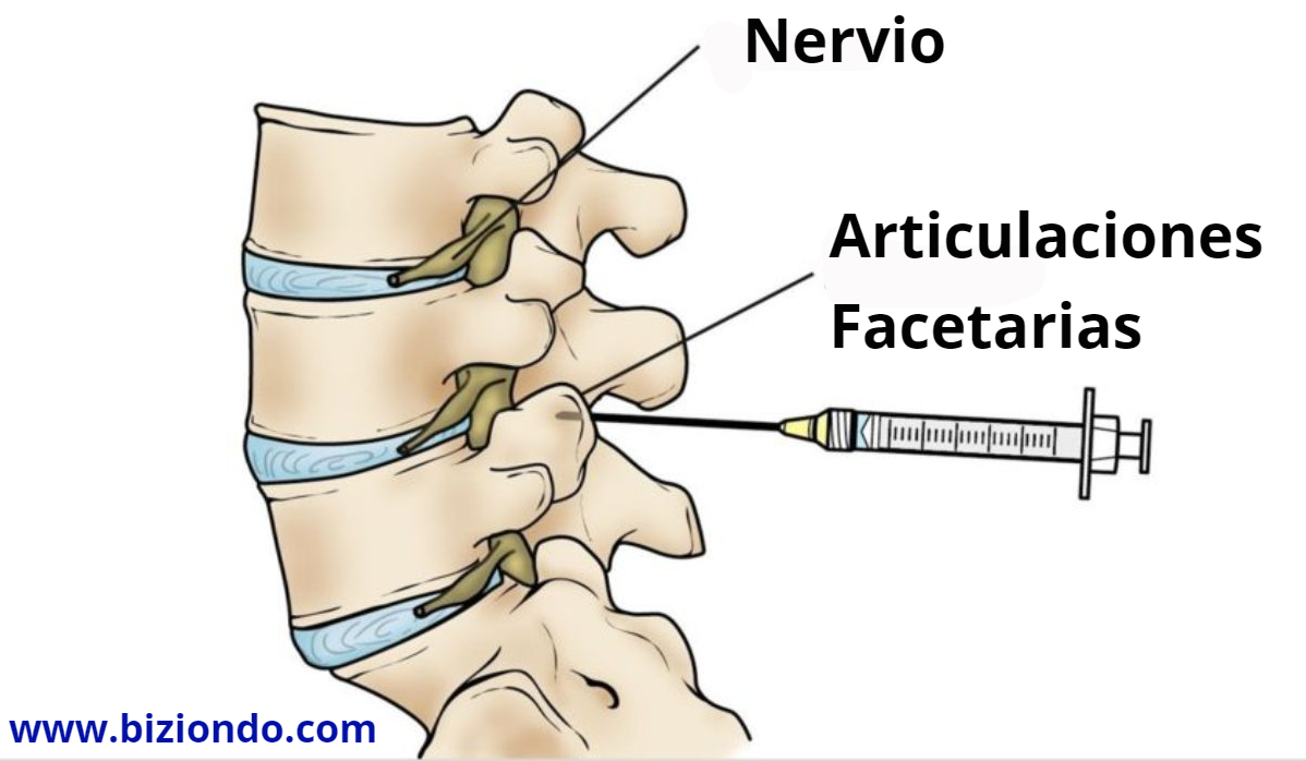 Este bloqueo se realiza dentro de la cápsula articular de las articulaciones facetarias, en la parte baja de la columna vertebral, por fuera del conducto epidural y de la médula espinal, por lo que no existe riesgo de lesionar las estructuras nerviosas. El bloque facetario es un procedimiento que, si se realiza cumpliendo todas las normas, es muy seguro y altamente efectivo (en más del 90 % de los casos).